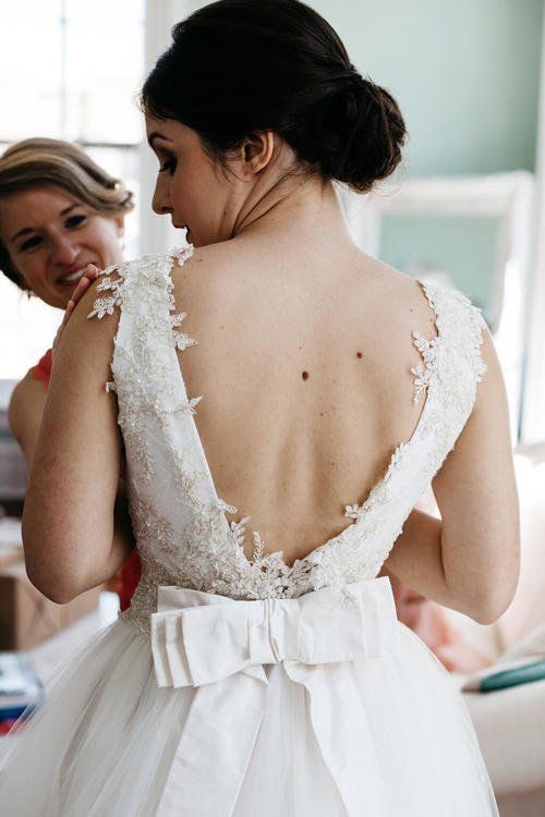 Alison is one of the lovely ladies behind One + Only Paper and her vision of a chic, formal wedding melded together seamlessly with hand-made details that even blew us away. A few of our favorite details? That would have to be the bride’s stunning custom wedding dress created by the MOB and a formal dinner on a market lit lawn.