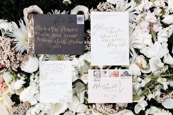 Day of Coordination: Hazel Weddings & Events | Photographer: Brett & Jessica | Paper Goods & Calligraphy: One & Only Paper | Florals: Simply Elegant Floral Designs | Catering and Cakes: Green Planet Catering | Rentals: CE Rentals & Party Reflections