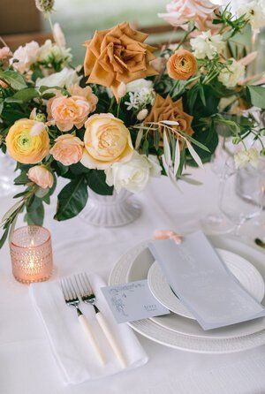 Our main house had every guest feeling like they were in Italy! Heather Lawson at Amanda Blair By Design was inspired by an Italian Countryside wedding - focusing her design on bright pastels and summer florals! She brought her inspirational photos to life and created the most magical space for our couples!