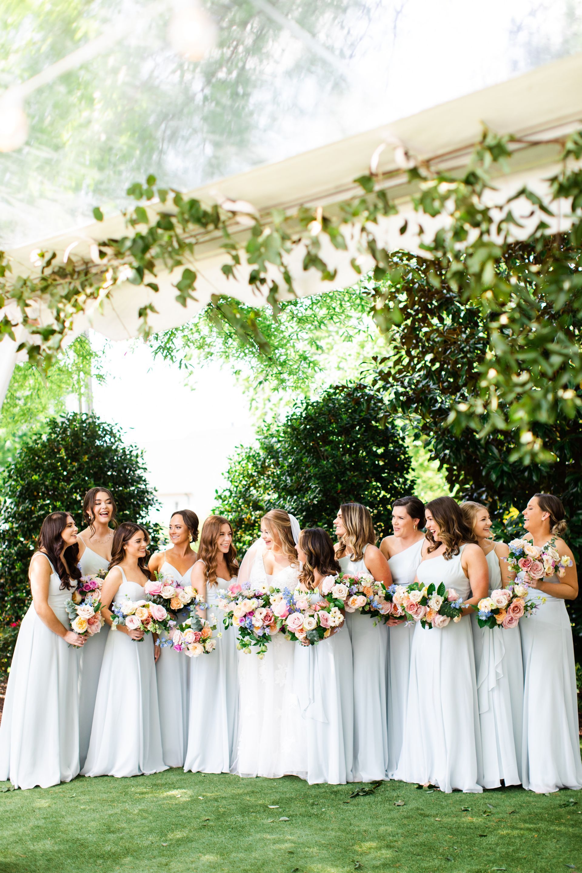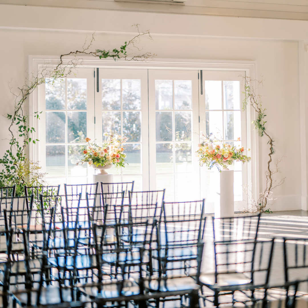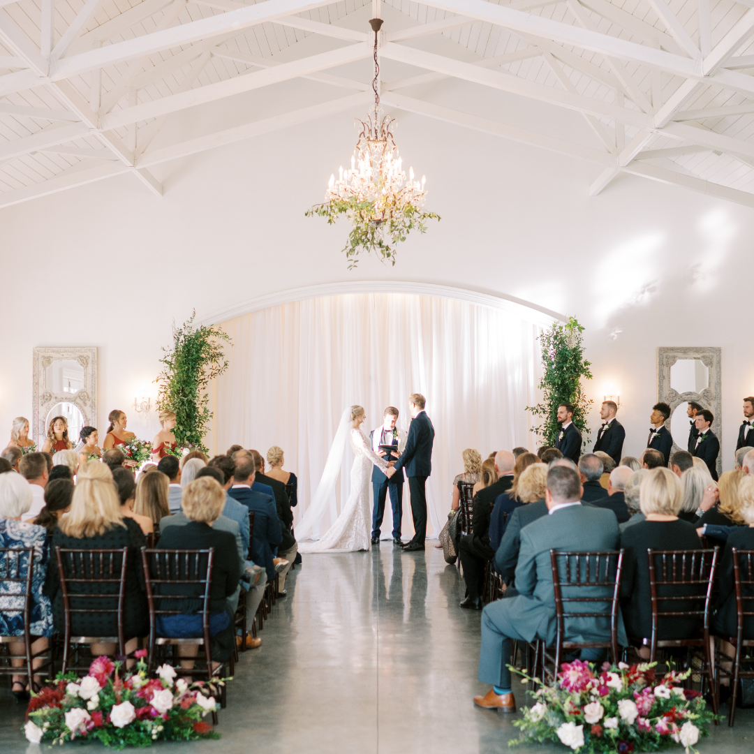 If you’ve dreamed of a summer wedding but are nervous about the heat, we have a variety of indoor options for you to choose from for your ceremony! With its original flooring and gorgeous chandeliers, our Main House is rich with southern charm and perfect for more intimate ceremonies! If you’re looking to share your day with a larger guest count then the Carriage House is a great indoor option for you! With bright white walls, high ceilings, beautiful crystal chandeliers and a variety of backdrops to choose from, this space can be catered to any couple’s style! The Pergola is another option if you want to escape the heat, while exchanging your vows! This fully air conditioned space creates a more indoor-outdoor feel with its large windows and white lattice walls!